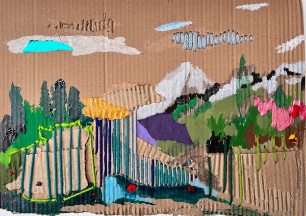 Acrílico, pastel oleoso, giz de cera, lã e grafite sobre papelão