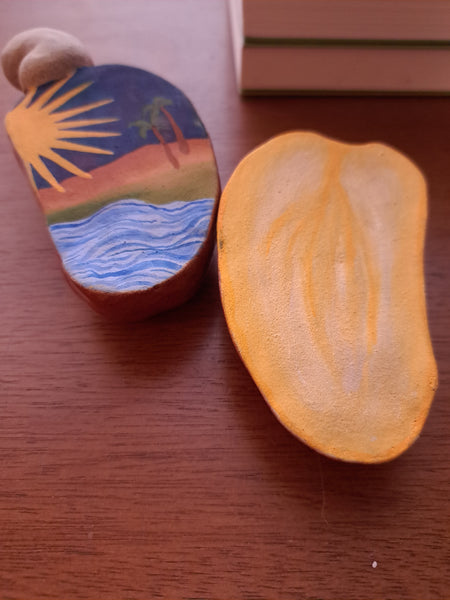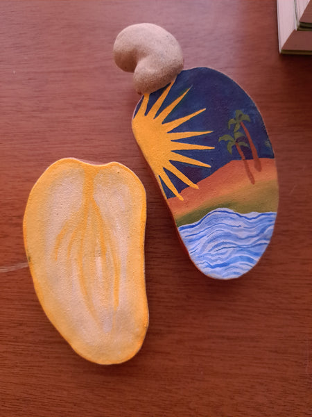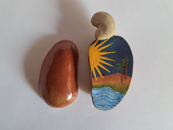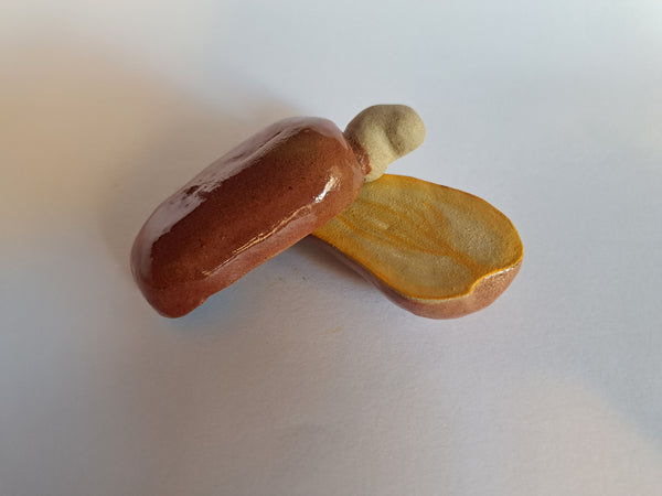 Escultura em cerâmica (argila creme) e esmalte de alta temperatura, tinta guache