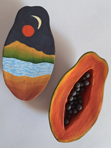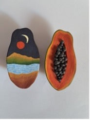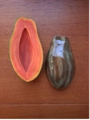 Dimensões: aberto: 3 cm (A) x 5,7 cm (L) x 11 cm (P) e fechado: 5,5 cm (A) x 5,7 cm (L) x 11 cm (os caroços são peças à parte)