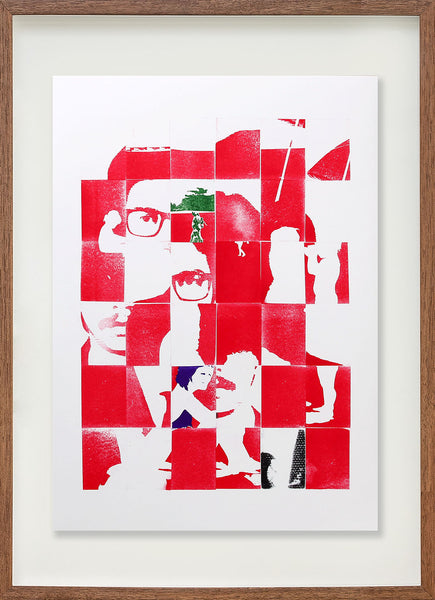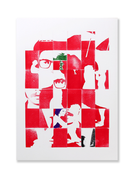 Módulos de MDF com tinta Flash preta, verde, roxa e vermelha em borracha microporosa sobre papel