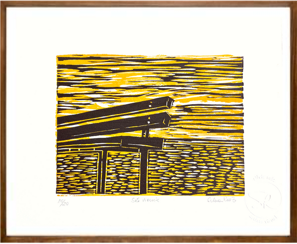 [essa obra está emoldurada em madeira clara, caxeta; com paspatour e moldura a dimensão da obra acresce cerca de 7cm em cada extremidade]