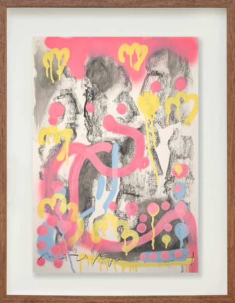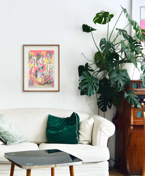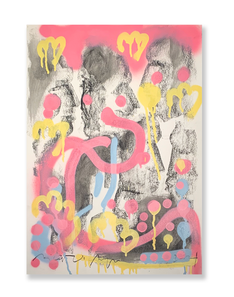 Monotipia e tinta spray sobre papel59,5 (A) x 42 (L) cm2021Obra únicaAssinatura no canto inferior esquerdo[com paspatour e moldura a dimensão da obra acresce cerca de 7cm em cada extremidade]Código: RicBue_obra86