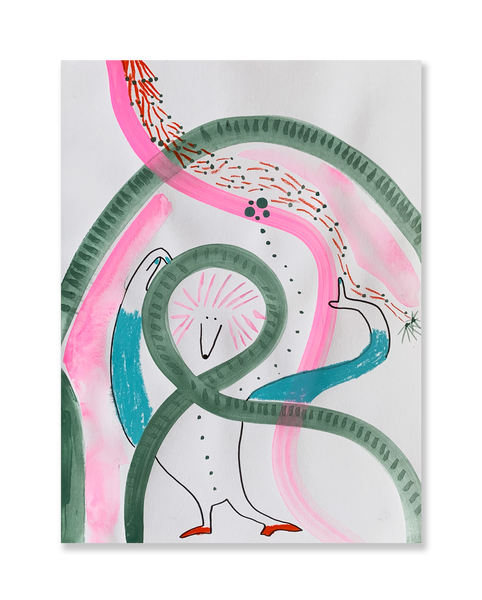 Caneta preta, guache e giz sobre papel 30,5 (A) x 23 (L) cm2020Obra únicaAssinatura no verso[com paspatour e moldura a dimensão da obra acresce cerca de 7cm em cada extremidade]Código: SanJav_obra69