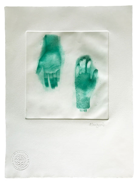 Cota da obra da série 'Meter os pés pelas mãos', fotogravura sobre papel de Patricia Bigarelli
